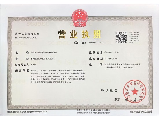 河北東少緊固件制造有限公司專注成就高品質(zhì)產(chǎn)品        一般納稅人企業(yè)